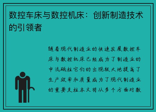 随着现代制造业的快速发展,数控车床与数控机床已经成为了制造业的中流砥柱,它们的出现极大地提高了生产效率和质量,成为了现代制造业的重要支柱。本文将从多个方面对数控车床与数控机床进行详细的阐述,希望能够引...